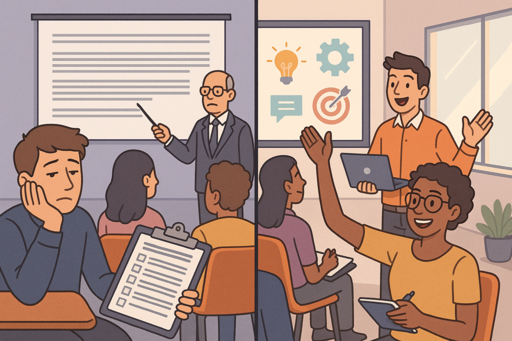 Você já participou de um treinamento em que parecia estar apenas cumprindo uma obrigação? Talvez sentado em uma sala, assistindo slides cheios de textos, esperando apenas o final para assinar a lista de presença? Agora imagine se esse mesmo treinamento conseguisse prender sua atenção, despertar seu interesse e, principalmente, fazer você lembrar e aplicar o que aprendeu no dia a dia.
