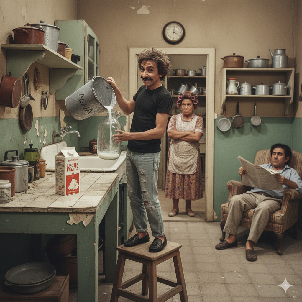 No episódio “O Leiteiro (1973)”, em que Chaves e Chiquinha encontram uma cachorra e precisam alimentar os filhotes, há uma cena em que o Sr. Madruga adiciona água no leite, ou seja, comete uma fraude que é considerada crime de natureza econômica, visando o lucro e com baixo risco de detecção. Nesses casos, indivíduos ou empresas inescrupulosas buscam aumentar o volume do produto, reduzindo custos ou mascarar a má qualidade do leite para evitar perdas financeiras.
