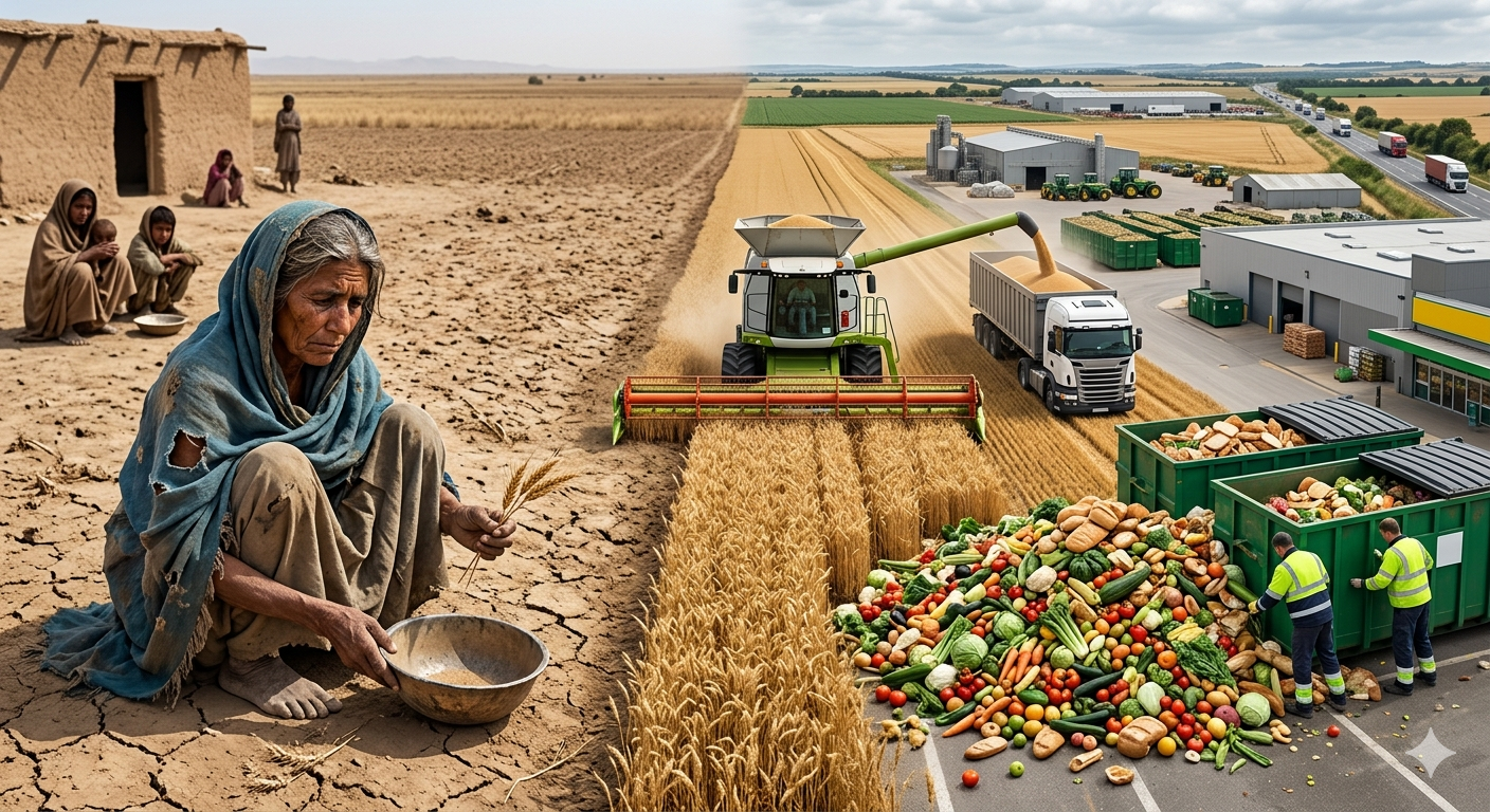O paradoxo aqui é evidente: não é apenas um problema de produção — é um problema de distribuição, acesso e gestão da cadeia alimentar, incluindo a gestão de desperdício ao longo de toda a cadeia.