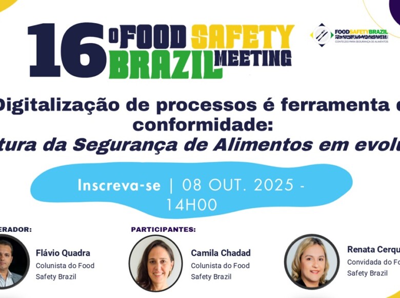 Leia mais "Participe do 16° Food Safety Brazil Meeting – evento on line e gratuito" "Participe do 16° Food Safety Brazil Meeting – evento on line e gratuito"2 min leituraA higiene das instalações, utensílios e equipamentos na indústria de alimentos é fundamental para garantir a segurança dos alimentos, a conformidade regulatória e a qualidade do produto. Um programa eficaz de […]