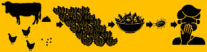 - Versão 2 (história): “Em uma padaria, um funcionário usou a mesma faca para cortar frango cru e depois fatiar pão. O resultado? Diversos clientes passaram mal e a empresa perdeu consumidores fiéis.”